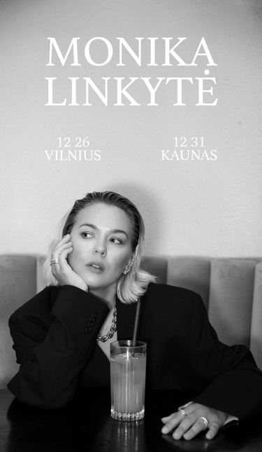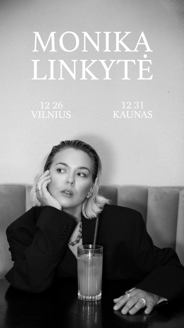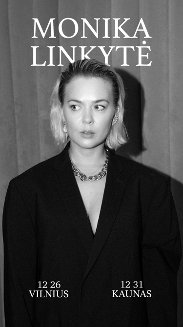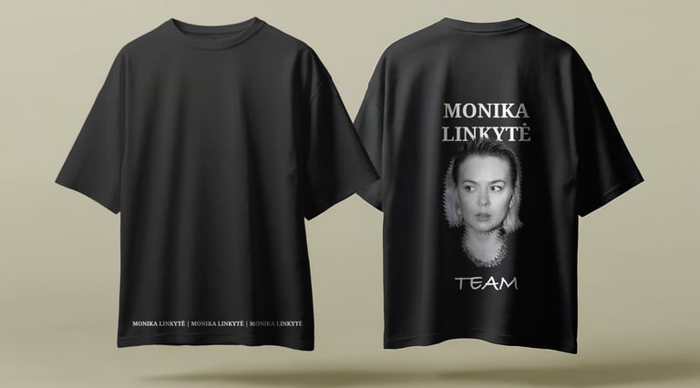 For Monika Linkytė, I created concert promotion visuals, team merchandise designs, and photography during creative sessions. The visual direction aimed to mirror her music’s emotional depth and warmth, blending softness with strength.